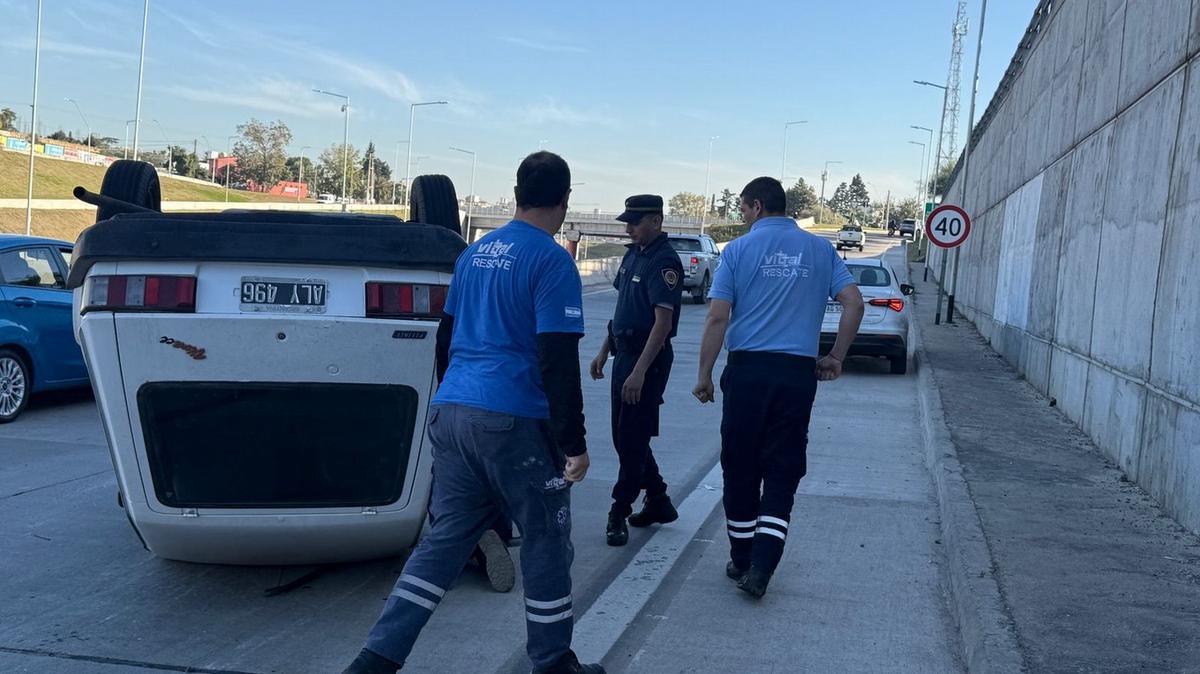 Afortunadamente, el conductor salió ileso. “Por suerte no me pasó nada. El auto es una pena, pero estoy perfecto. Unas personas me ayudaron porque las puertas se trabaron contra el pavimento”, agregó.