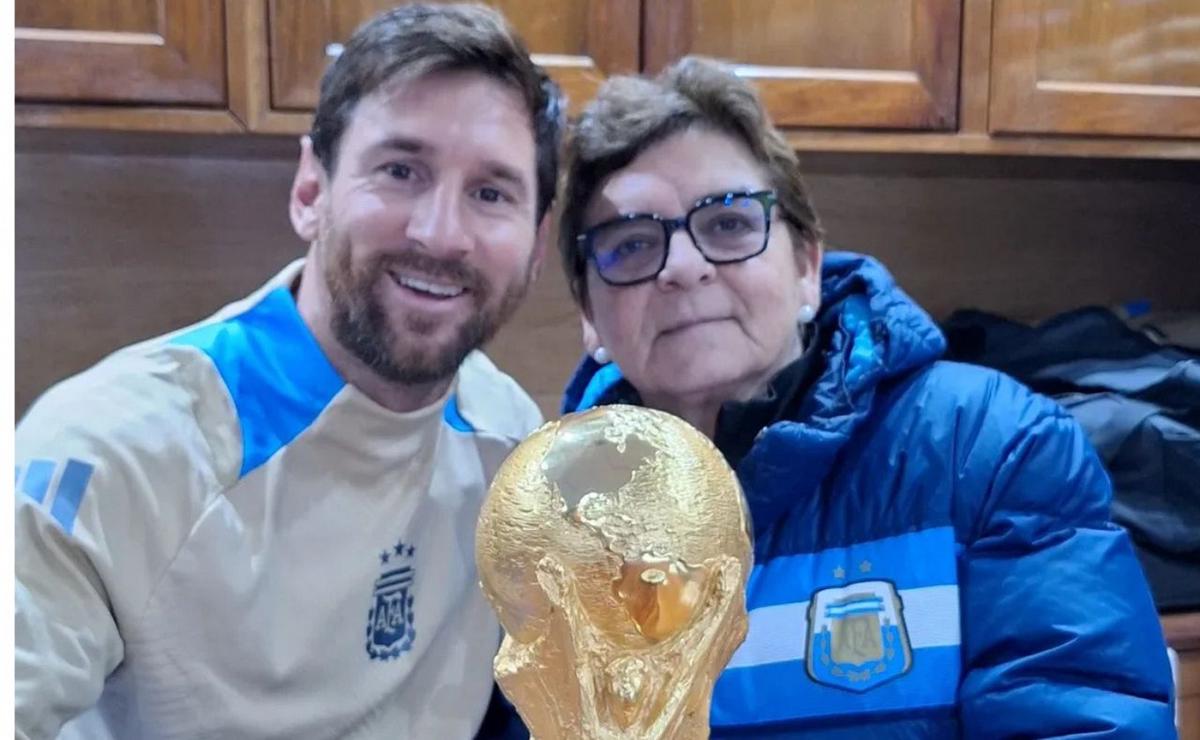Se sacó una foto con Lionel Messi y la Copa del Mundo.