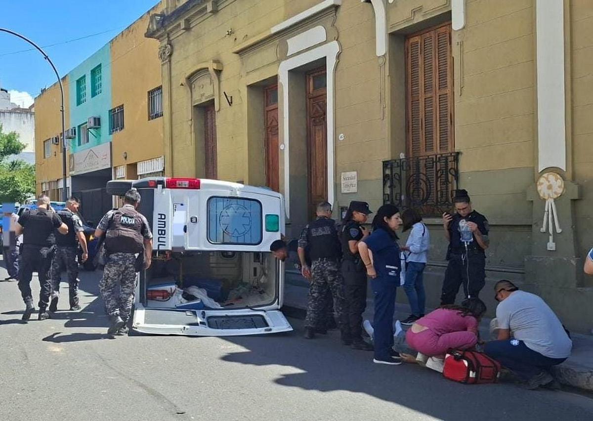 “La ambulancia venía por calle La Rioja y gira por Rodríguez Peña, sin percatarse que era a contramano. Perdió el control del rodado e impactó contra un vehículo estacionado y se dio vuelta", explicó a Cadena 3 el subcomisario Cristian López, quien trabajó en el lugar.