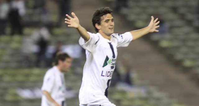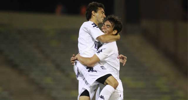 Agust�n D�az festeja el segundo gol albiazul de la victoria ante Central C�rdoba.