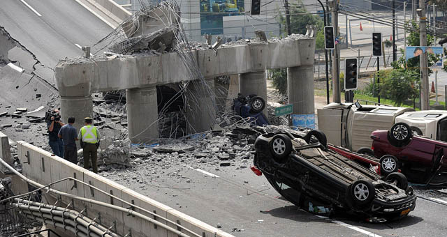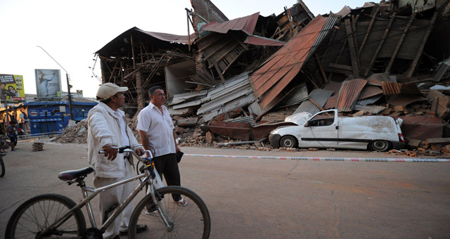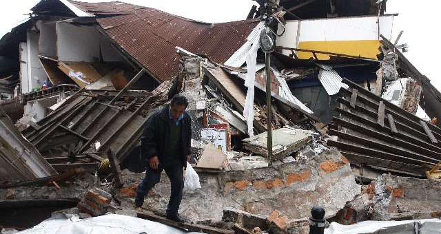Construcciones derrumbadas por el violento movimiento s�smico en el pa�s vecino.