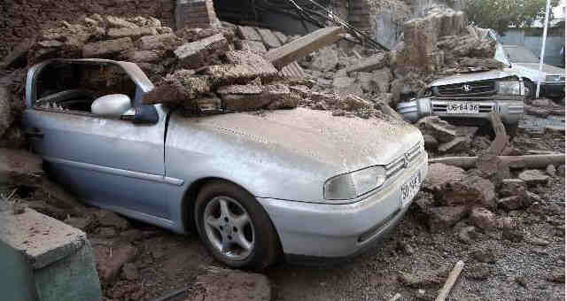 Autom�viles sepultados en la localidad de Curico, luego del terremoto.