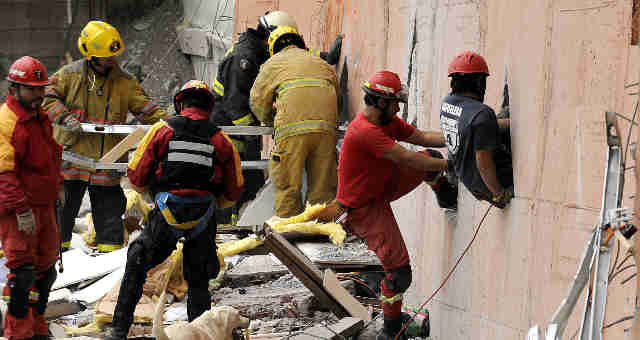 Los rescatistas trabajan a ritmo acelerado en un edificio de Concepci�n.
