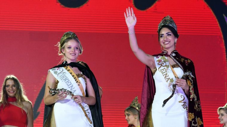En la noche central de los festejos vendimiales, Natasha Sánchez, de 21 años, representante del departamento de Santa Rosa. Este domingo se realizará la "Primera Repetición", con Abel Pintos.