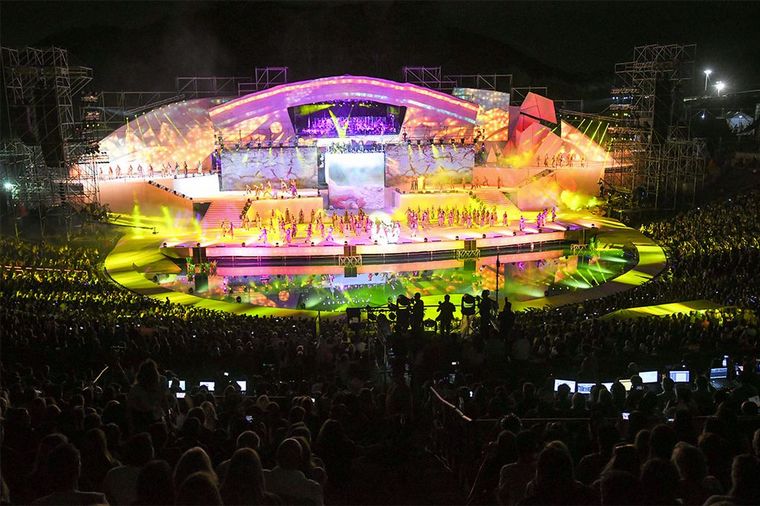 La Fiesta Nacional de la Vendimia regresó a la presencialidad en el Anfiteatro Griego Frank Romero Day, con una fuerte alusión a la historia, de los huarpes a San Martín, y una puesta de la que participaron unos 750 artistas entre actores, bailarines, y músicos.