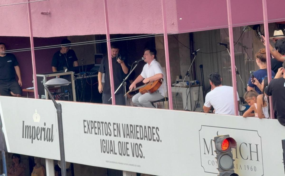 Campedrinos también cantó en el balcón de la Munich y tuvo un invitado muy especial: Nahuel Pennisi, con quienes cantaron "Mujer, niña y amiga" de Destino San Javier. Y siguieron otros clásicos.