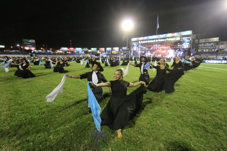 Bajo la dirección de Ángel Carabajal se desplegó un acto con más de 500 bailarines en el campo de jineteada y 50 artistas en escena, en un show que vinculó escenario y campo.