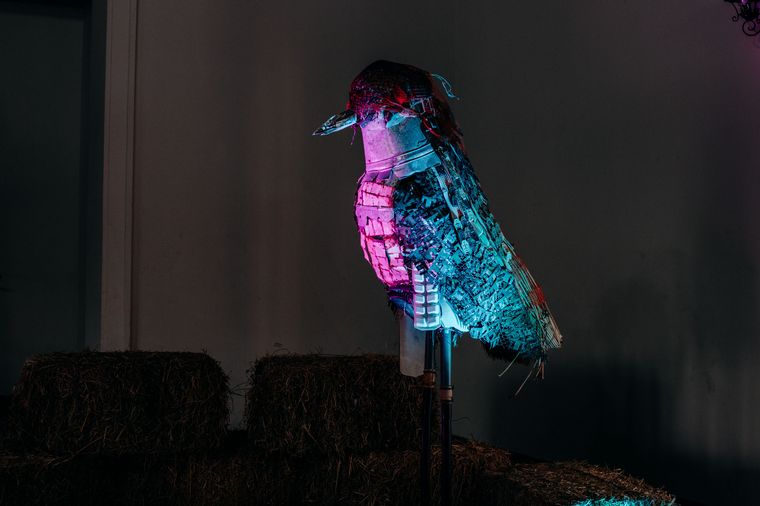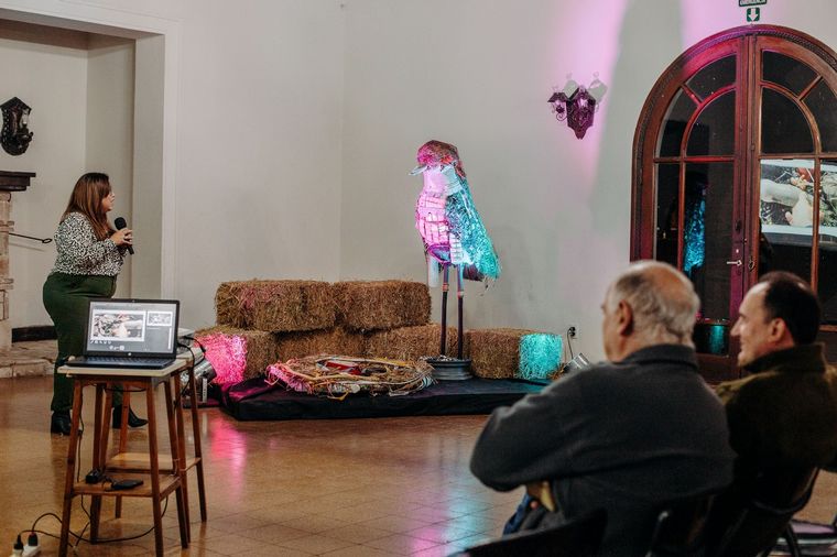 De la mano de la artista plástica Mavi Furlotti presentaron el pasado martes en el Club House del Jockey Club Rafaela la obra "Arrojo", una escultura de 2,05 mts de altura confeccionada íntegramente con basura urbana que llega a caminos y campos.