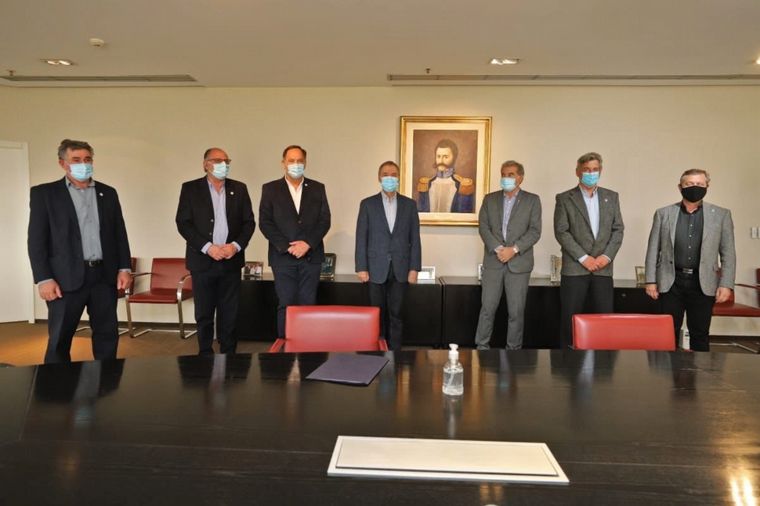 El gobernador Juan Schiaretti, junto al ministro de Agricultura y Ganadería Sergio Busso, recibió este miércoles en el Centro Cívico del Bicentenario a las autoridades de la Mesa de Enlace Nacional.