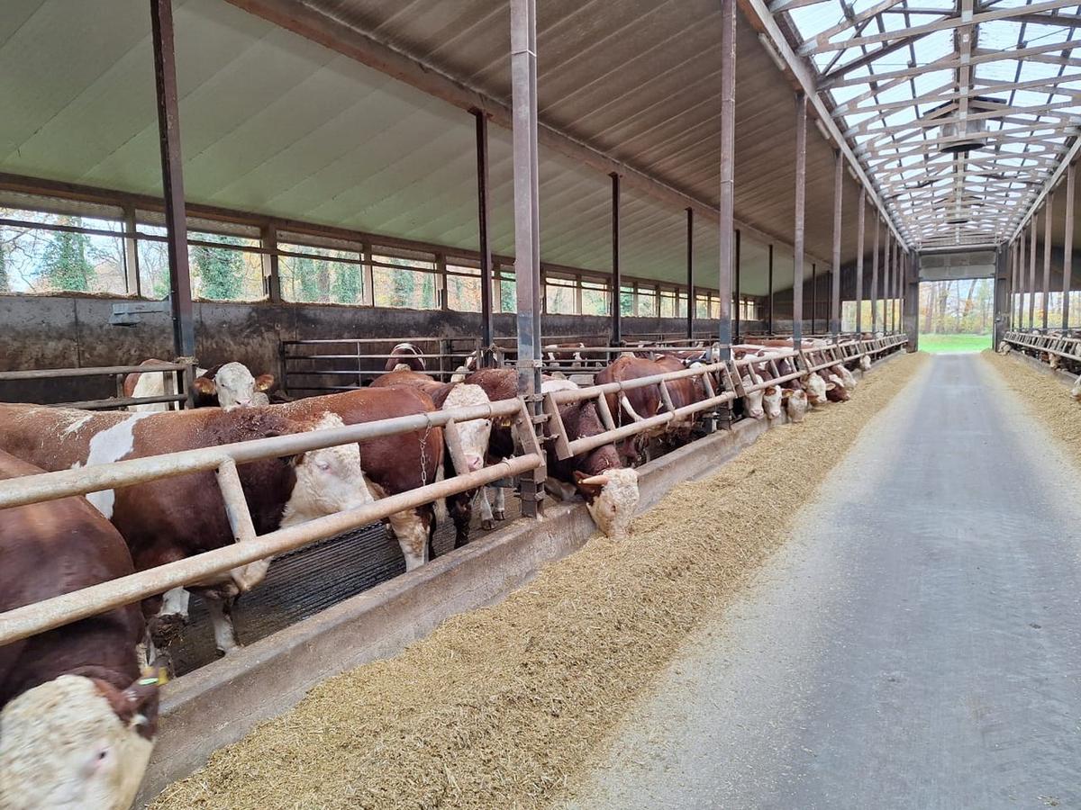 La estrella del establecimiento es la raza Simmental (Fleckvieh), una de las más apreciadas en Alemania por su aroma intenso y su notable grasa intramuscular. El detalle que marca la diferencia: los animales se crían sobre cama de paja, lo que favorece su confort y mejora la calidad de la carne.