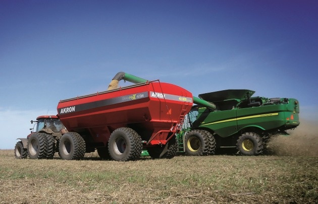 En el stand de Akron se puede observar toda la línea completa de equipos, encabezada por las máquinas más demandadas: las tolvas autodescargables GranMax con capacidades de 35, 30, 25 y 23 toneladas.