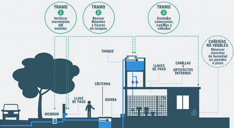 Lo más común es que las pérdidas se encuentren en los dos metros de la cañería que van desde la caja donde está el medidor hasta el tanque. Otras señales a las que podés prestar atención son el hundimiento de veredas o la presencia de humedades en las paredes de la vivienda.