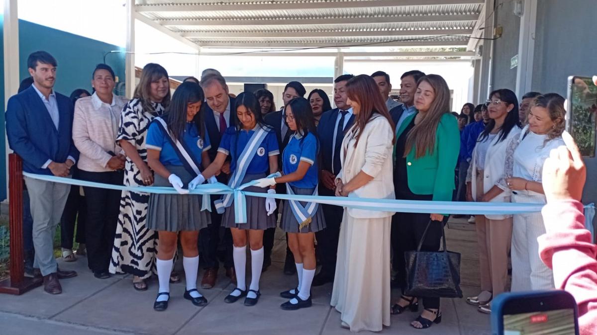 La obra, que incluye un polideportivo techado, un laboratorio, cocina, salón de usos múltiples y nuevas aulas, fue inaugurada en un acto que contó con la presencia del vicegobernador de Jujuy, Alberto Bernis, y la ministra de Educación, Daniela Teceira.