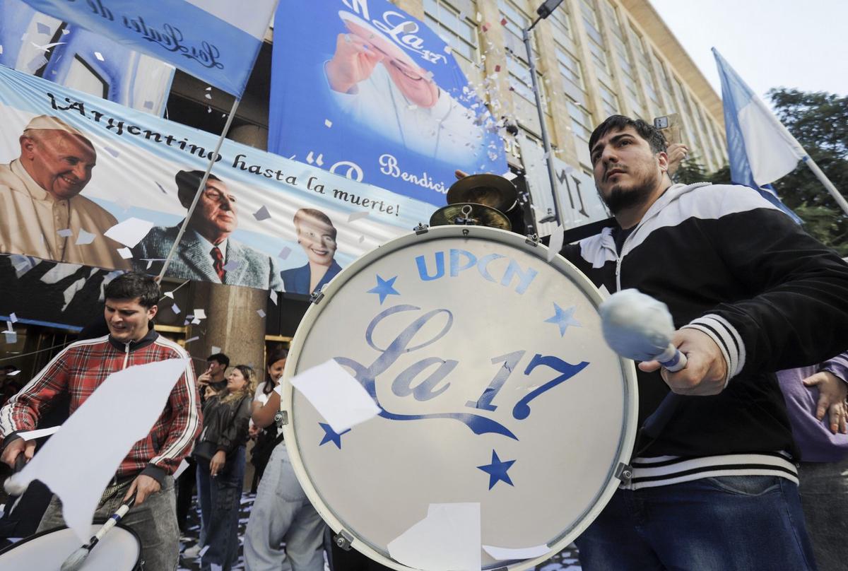 La concentración se desarrolla en la Plaza de Mayo, donde el acto central está previsto para la tarde con la lectura de un documento y una misa en homenaje al Papa Francisco.