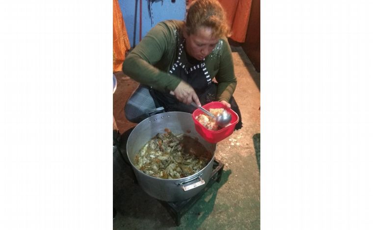 "Tenemos 47 familias fijas, son 113 porciones fijas los martes y viernes, más la gente que pasa y ve que estamos dando de comer y nos piden si les podemos dar e inmediatamente le damos", sumó.