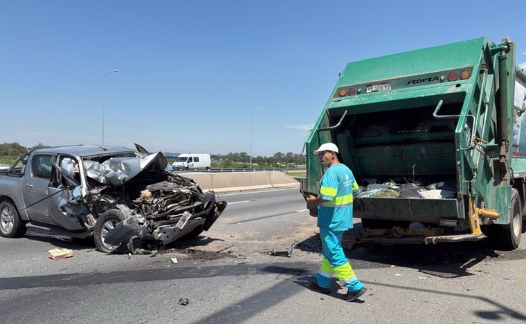 Fuerte choque entre un camión de basura y una camioneta en plena Circunvalación