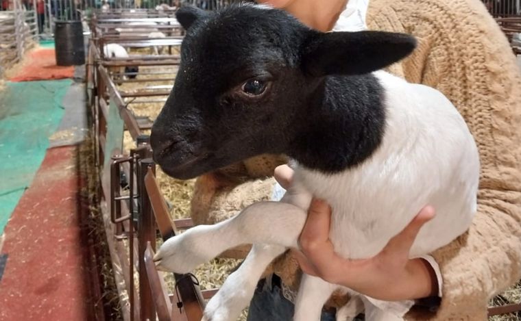 Oriundo de Córdoba, el productor rural que la vio nacer, Pablo, llegó a la feria para presentar tres razas diferentes: hanschen, pampinta y dorper black (la de Alma, que es oriunda de Sudáfrica y es completamente blanca menos la cabeza, que es negra).