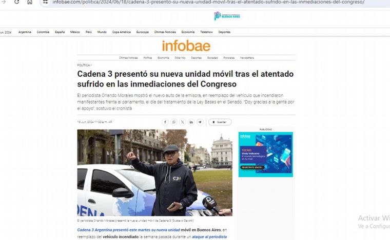 El sitio Infobae a través de una extenso informe destacó el emotivo momento y recordó con dolor lo que fue un atentado a la prensa: Cadena 3 presentó su nueva unidad móvil tras el atentado sufrido en las inmediaciones del Congreso