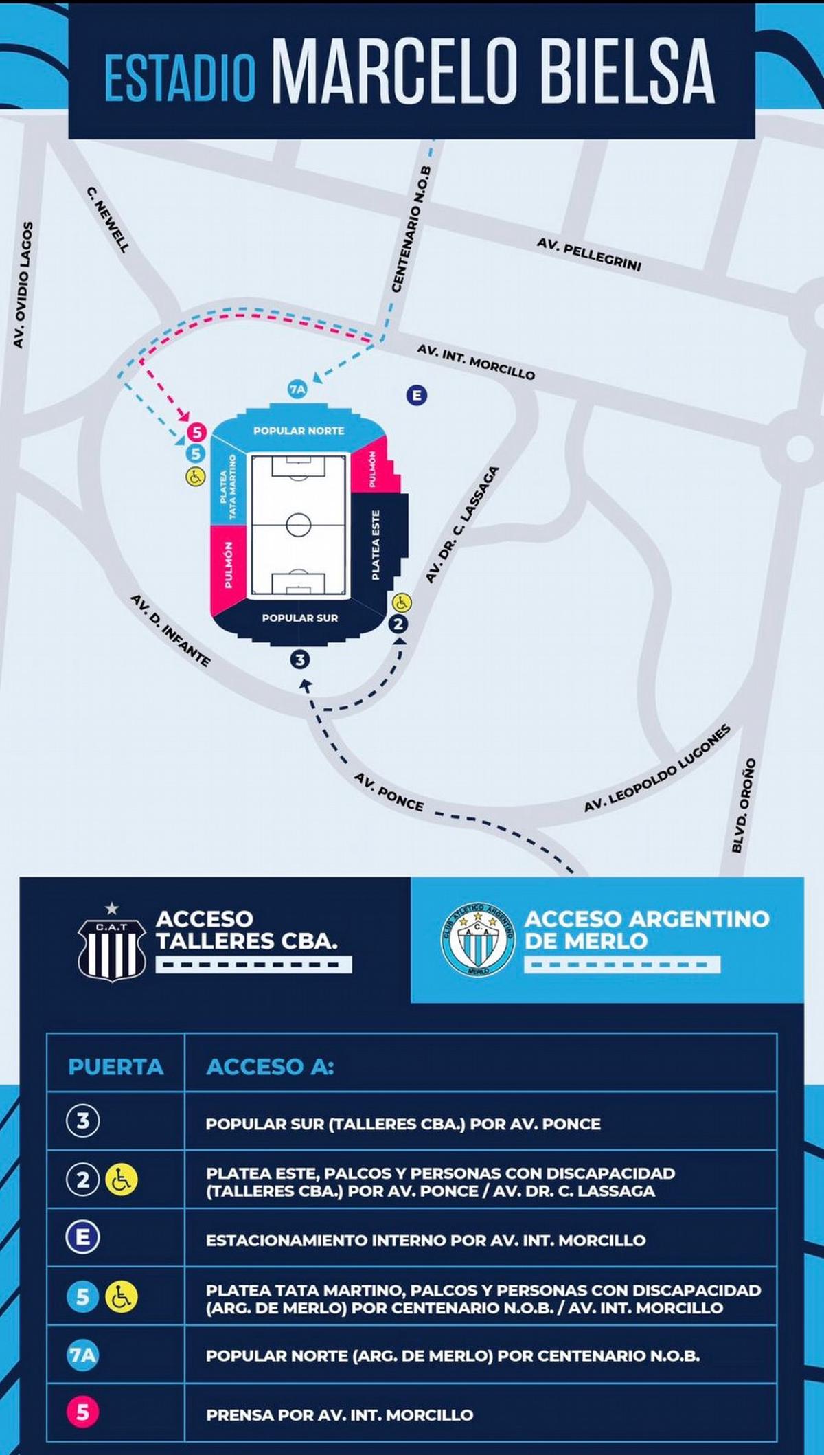 Según el croquis oficial de accesos, los hinchas que posean entradas para la Popular Sur (Puerta 3) deberán ingresar por la Avenida Ponce. Este acceso es exclusivo para la parcialidad de Talleres, buscando separar los flujos de gente y garantizar un ingreso ordenado al recinto.
