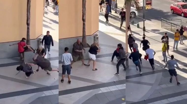 Fueron acorralados y golpeados por un grupo de delincuentes, aparentemente, menores de edad, a la salida de un centro comercial.
