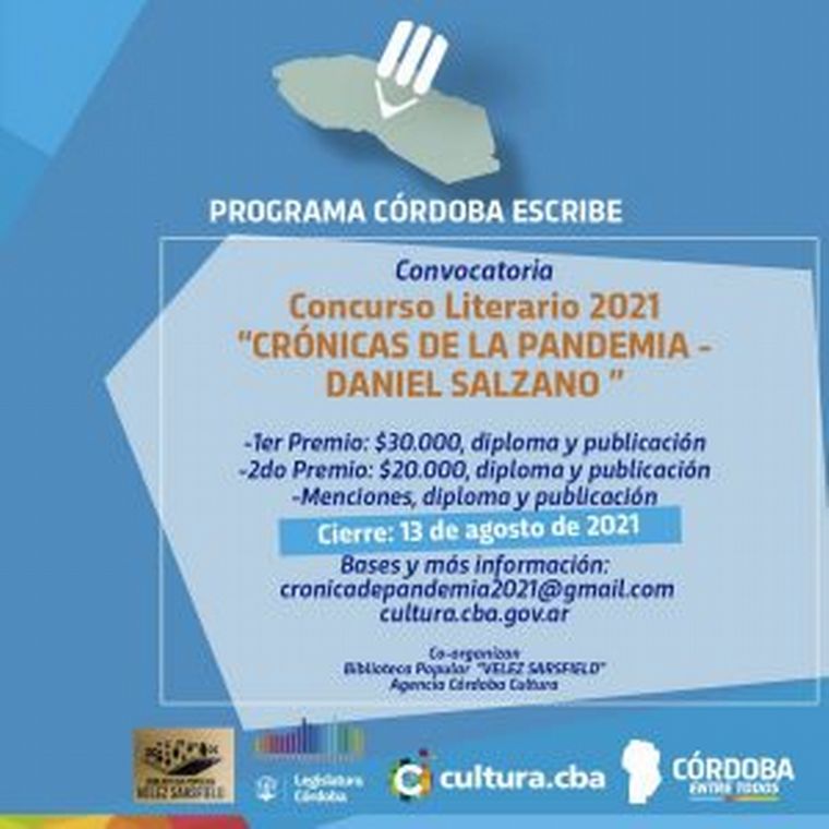 La Agencia Córdoba Cultura lanzó ayer el Concurso Literario "Crónicas de la pandemia - Daniel Salzano". La convocatoria está abierta a todos los cordobeses hasta el 13 de agosto.