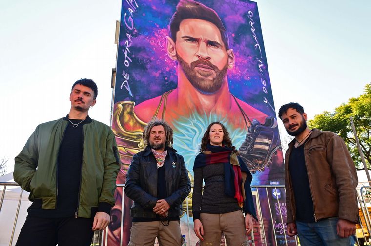 "El mural es un ''Leo'' descamisado, que no tiene ninguna casaca de ningún color porque Messi es de todos, es de la gente, con dos botines colgados al cuello: uno clásico, roto y embarrado, como el que usa cualquier jugador, y el de oro (que el "10" ganó en seis oportunidades)", explicó a Télam Fernando Lerena, uno de los creadores de la obra.