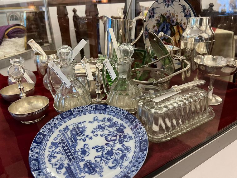 Entre los objetos más preciados en este museo, se destaca la vajilla. “La parte del comedor es emblemática, a la gente le llama mucho la atención la platería porque eso muestra cómo era el servicio. Al trabajador se le daba lo mejor”, cuenta Cintia.