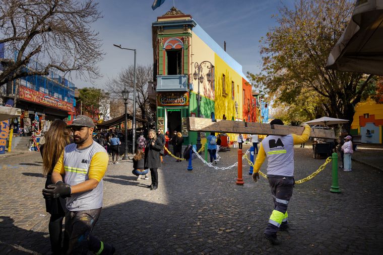 Las construcciones intervenidas con pintura pertenecen a las propiedades lindantes con Caminito y suman 24 inmuebles, de edificaciones típicas del barrio levantadas con material, chapa y madera.