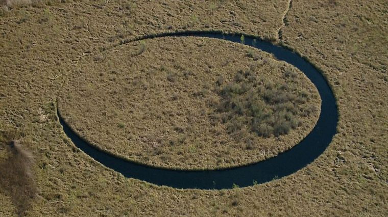 Se trata de un círculo de tierra que está rodeado por un anillo de agua de 120 metros de diámetro y que está ubicado entre Campana y Zárate. Se cree que tiene más de 30 años.