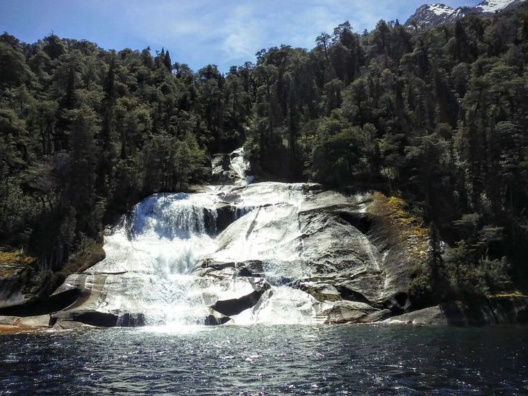 Una cascada blanca para admirar en el lago Nahuel Huapi