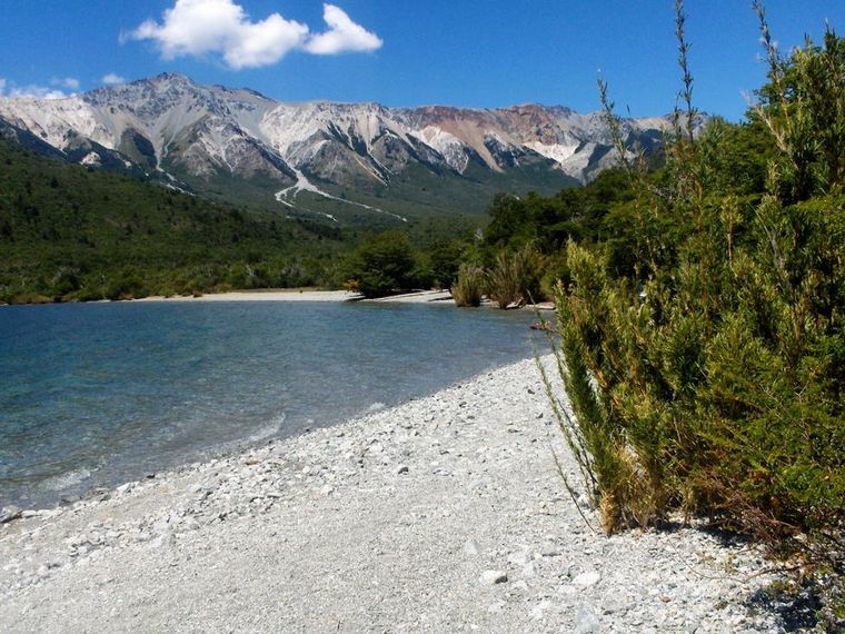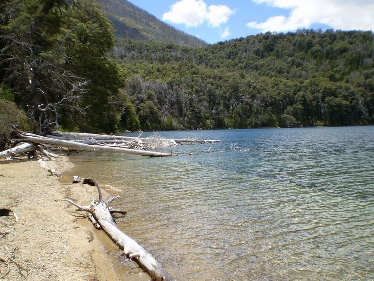 Este espejo de agua es de origen glaciario. A muy pocos metros de la costa, el color azul de sus aguas, dan cuenta de las aguas profundas. La costa es angosta y tiene algunos sectores de arena y otros de piedras pequeñas. La playa es amplia, con lo cual hay suficiente lugar como para ubicarse manteniendo distancia con el vecino. La vegetación virgen del lugar permite resguardarse del sol y disfrutar un rato de calma bajo la sombra.