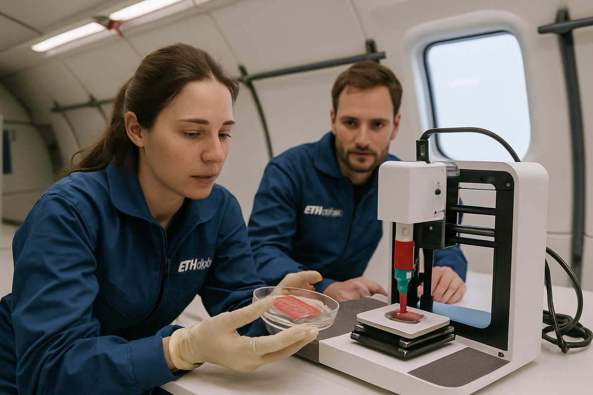 Científicos de ETH Zurich lograron imprimir tejido muscular complejo en condiciones de microgravedad. Este avance permitirá probar medicamentos para misiones espaciales en el futuro.