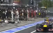 Mark Webber salió de boxes cuando los mecánicos no habían terminado de poner una rueda, que salió rodando e impactó en un camarógrafo. Multarán a Red Bull con 30.000 euros. Mirá el video.