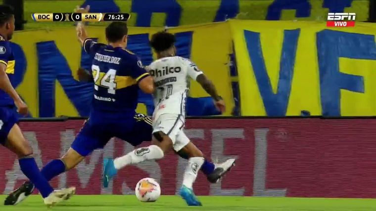 A los 28 minutos del complemento, luego de una mala salida de Boca, Santos aprovechó el contraataque conducido por Alison y creó una situación de gol.