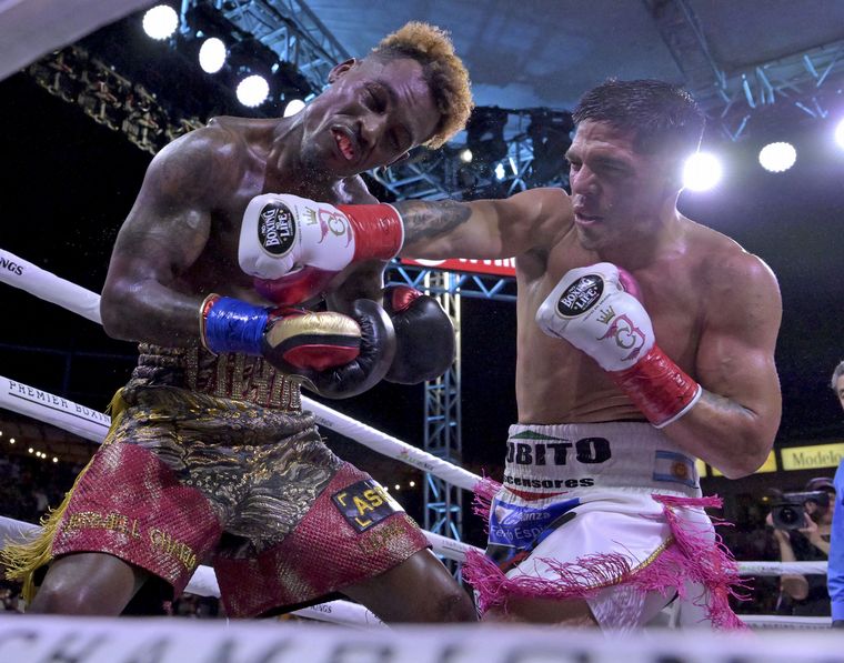 Tras apoyar una rodilla en el piso, el argentino recibió la cuenta del árbitro local Jerry Cantu, se recuperó, pero Charlo tuvo el margen de tiempo necesario para buscar a su rival sentido y forzar la detención de un combate electrizante en la mitad inicial.