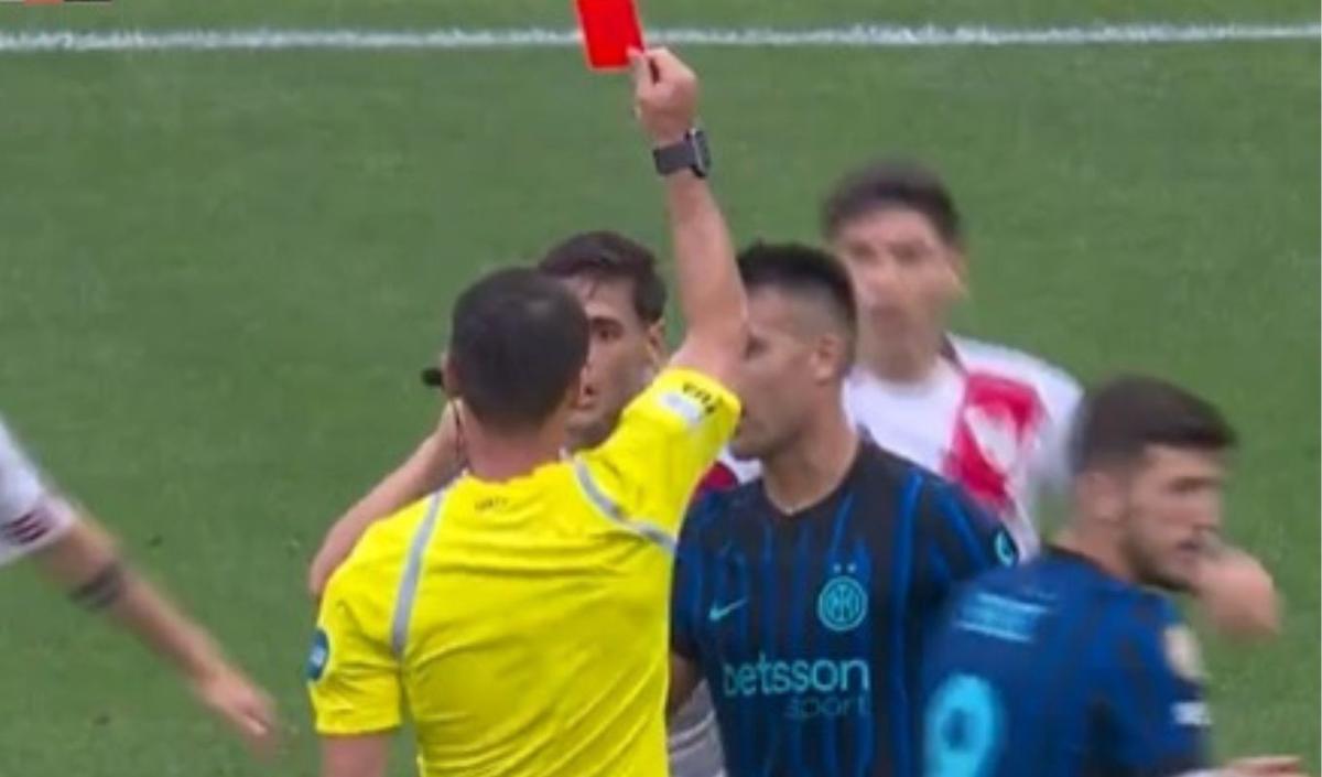 FOTO: El referí le muestra la tarjeta roja a Martínez Quarta (Foto: captura de TV).