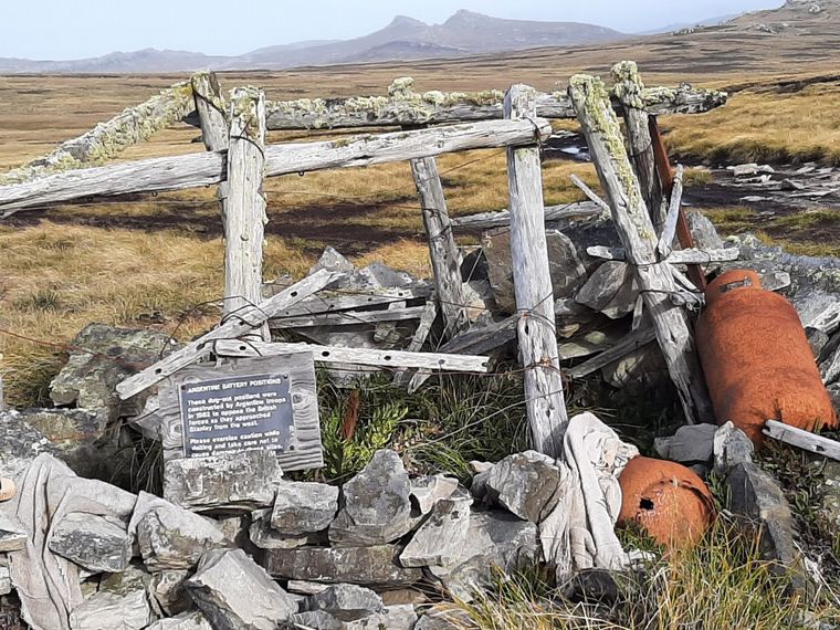 En este lugar, hay pequeñas cruces de madera puestas sobre distintos lugares de piedra donde cayeron los combatientes. Tanto ingleses como argentinos. En algunos casos, algunas placas recuerdan sus nombres.