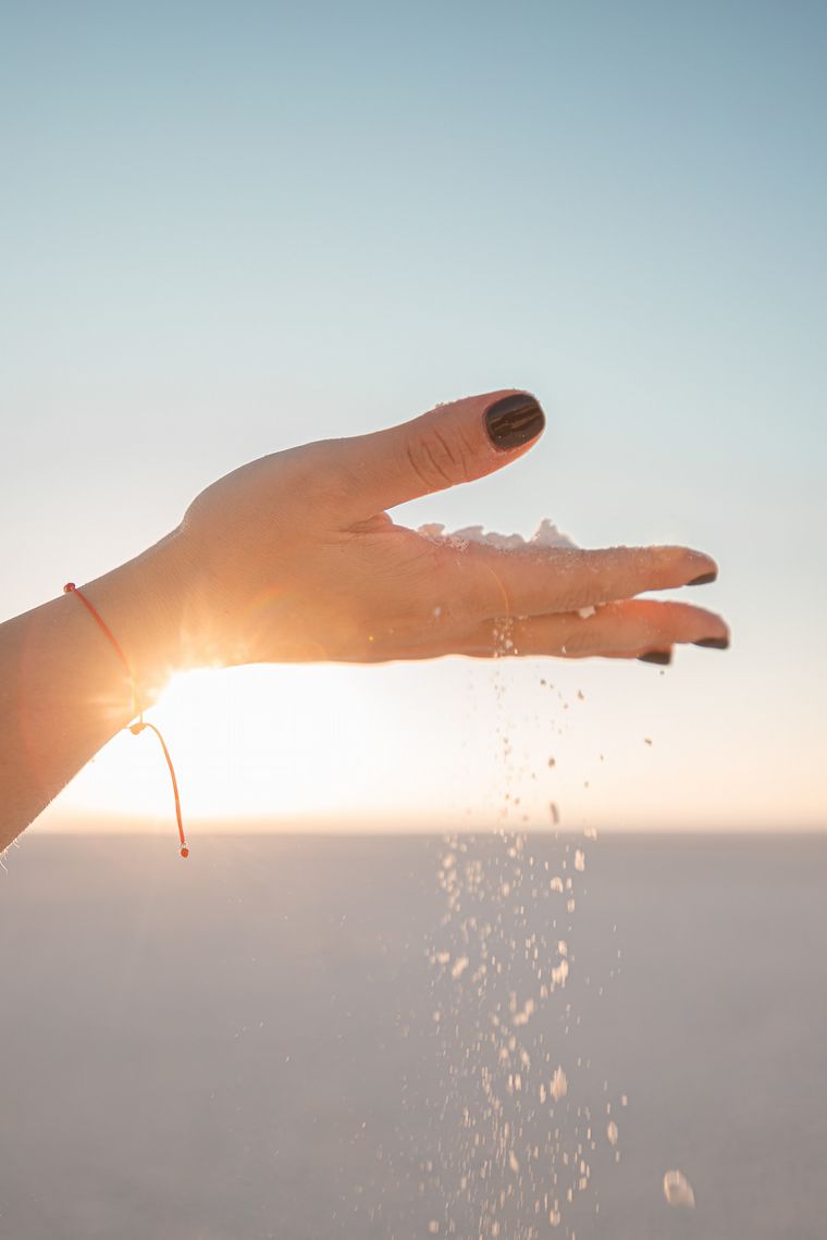 Uno de los momentos más especiales es cuando sale el sol y todo el cielo va cambiando de colores de un minuto a otro. En los alrededores, se pueden ver familias que todavía viven de cosechar sal y que llegan hasta este lugar para llenar sus bolsas y venderla.