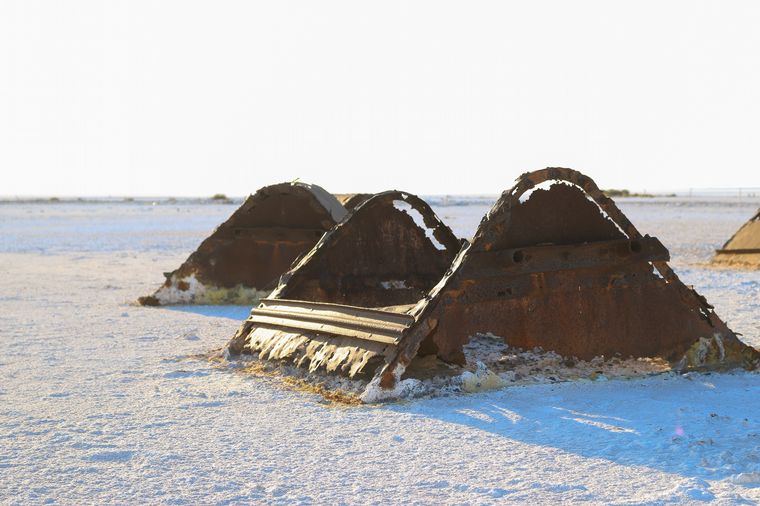 Los restos de lo que solía ser La Española, pueden encontrarse en este lugar: desde partes de carritos oxidados, algunas construcciones y hasta parte de lo que solían ser las vías para trasladar el material. Un cementerio metálico en medio de un gran mar de sal.