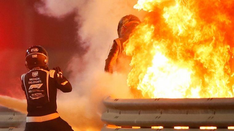 Esta es una escena que no queríamos ver en la Fórmula 1. Un escenario dantesco digno de los peligrosos años 70. Por fortuna Grosjean está bien y eso es lo que importa. Se debe trabajar para eliminar estos riesgos. #F1 #F1xFOX #BahreinGP pic.twitter.com/L3xAgijYms