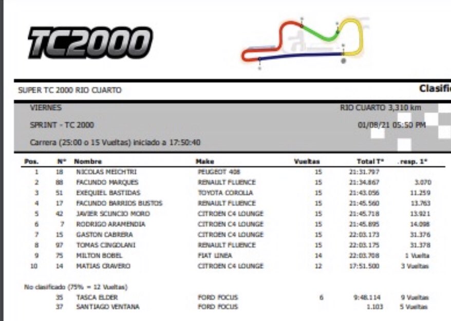 La conquista de Meichtri, la elaboró partiendo desde la quinta fila en una condición de pista extrema por la intensa lluvia caída minutos antes de la largada, pero la puesta a punto de su Peugeot 408 por parte del equipo, fue la clave para que pudiera avanzar con muy buenas maniobras y sobrepasos.