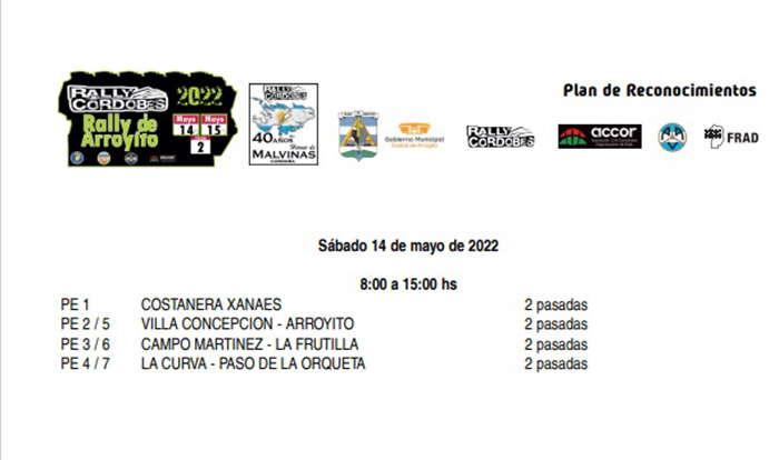 Caminos, Cronograma y Horarios para el Rally de Arroyito