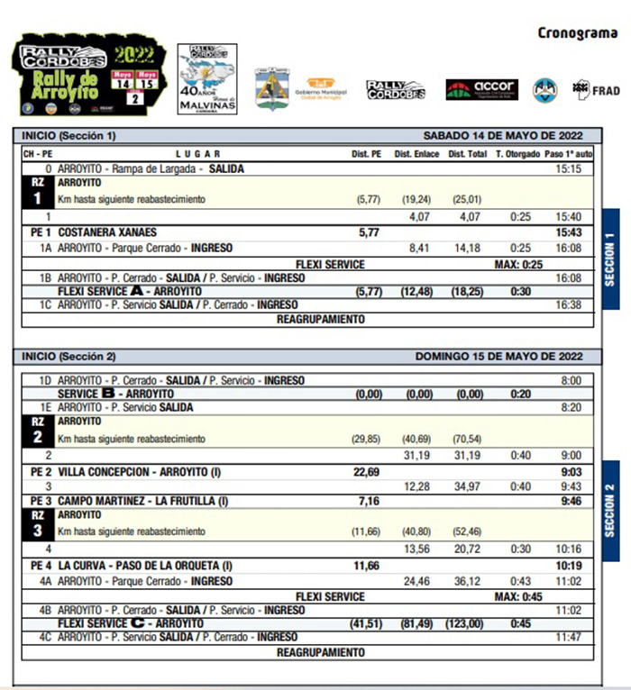La organización del Campeonato Provincial de Rally, junto a la Federación Regional de Automovilismo de Córdoba, ACRyR y la Municipalidad de Arroyito, oficializaron en esta jornada el Cronograma y Horarios para el fin de semana.