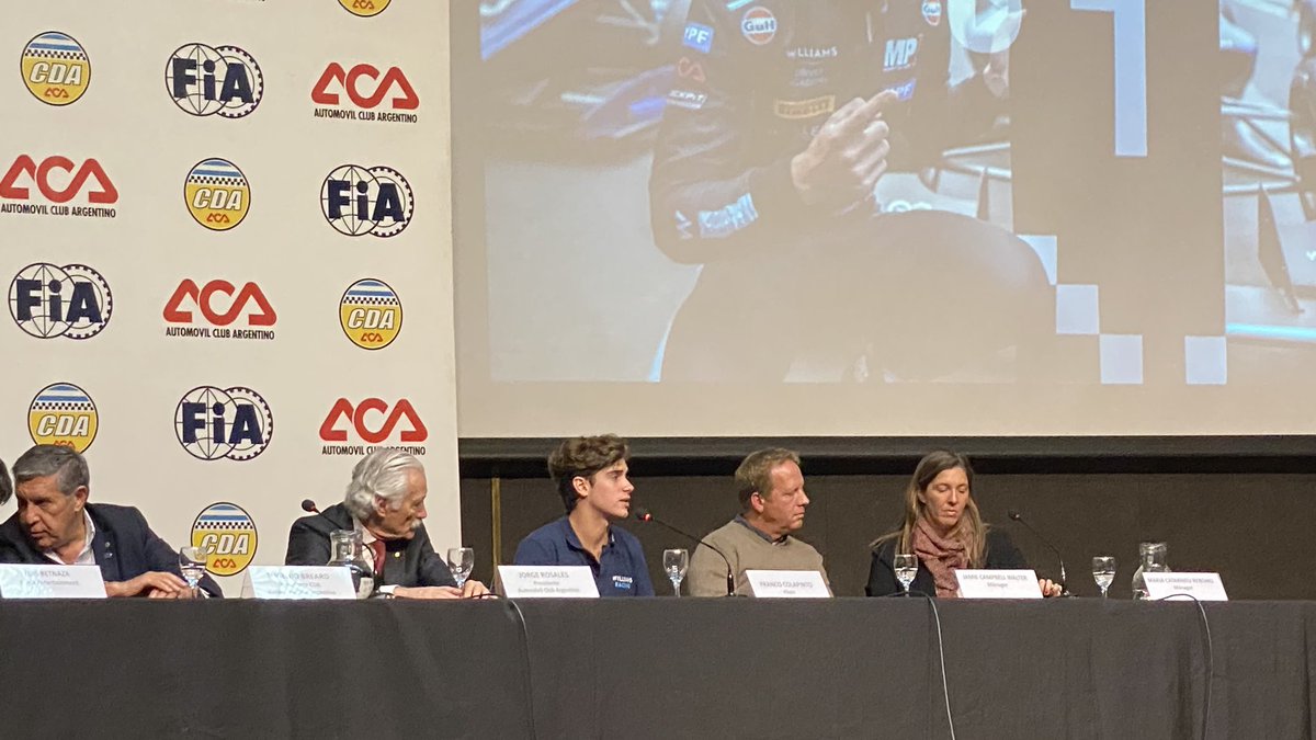 "Esto era una conferencia de prensa, pero en los últimos días se transformó en un anuncio de lo que va a seguir, lo que a venir, de cuál será el próximo paso. La realidad, es que no puedo contar mucho. Pero hay un par de cosas para contar, salieron al final muchas reuniones, fue una semana muy productiva. Con María y Jamie, tuvimos muchas reuniones en empresas y esas empresas. Ayer se confirmó la continuidad de 'Visit Argentina' para el año que viene. Quieren ayudar en la F2, quieren que yo suba y quieren aportar su parte de apoyo, como lo hicieron este año, para que pueda subir el escalón de la próxima categoría. Al igual que YPF, que también anunció su continuidad con nosotros, también quiere apoyarme para que suba a F2. La realidad es que el presupuesto es muy alto, es mucho más alto que en F3, son autos nuevos el año que viene, son mucho más caros, los equipos necesitan más dinero para desarrollar los autos. Y es un tema difícil que esperamos que se resuelva, yo confío mucho. Tengo un nuevo sponsor, Globant. El anuncio de Williams, se va a dar cuando esté confirmado en qué voy a correr el año que viene, una vez que confirmemos eso, Williams continuaría conmigo un año más. Y el anuncio más importante es que voy -probablemente- a hacer la carrera de F2 de Abu Dabi, la última carrera de la temporada (de 2023). No se sabe con cuál equipo, pero se sabe que hay algunos asientos que están libres. Y mis sponsors quieren que la haga, esa es una parte de su apoyo, también. Les interesa mucho que haga la última carrera. Y, si se da eso, sería algo muy importante para el futuro. Ganar esa experiencia de haber corrido una vez, antes de debutar en lo que sea y tener de una carrera con 'pit stops' y demás. Así que estamos terminando de buscar el presupuesto, no se puede anunciar nada porque todavía falta un poco. La realidad, es que estamos mucho mejor que el año pasado, a esta altura no estaba tan contento y este año verán que estamos todos más positivos, porque las reuniones fueron muy y bien y que viene todo muy bien proyectado, aunque no haya ningún anuncio para el 2024. Pero, en cuanto se sepa, se enterarán todos".