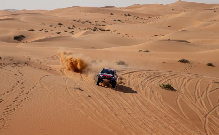 El puntero de la carrera, Nasser Al Attiyah, hizo el parcial medido que había anticipado que haría, cuidando cada detalle para no tomar ningún riesgo y mantener a salvo la posibilidad de su quinta victoria, que se acerca más con cada kilómetro que recorre con su Toyota Hilux GR DKR.