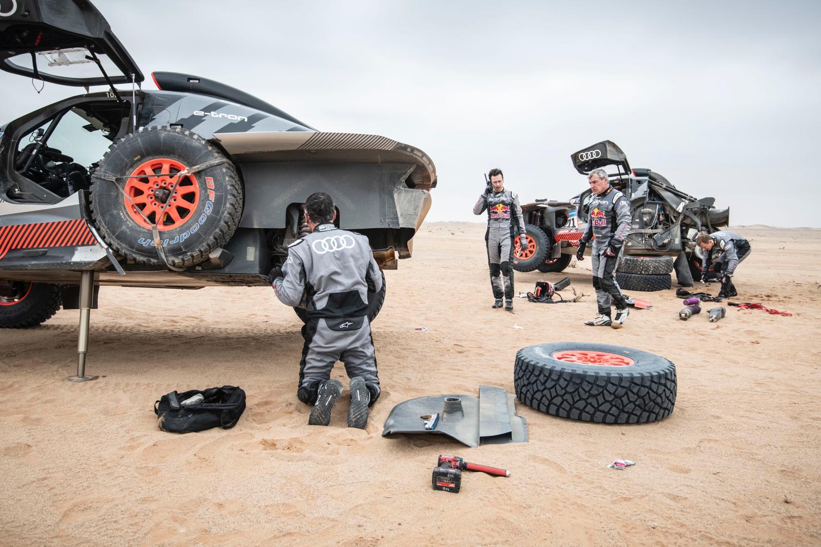 Y hablando de oportunidades perdidas, el equipo Audi dejó su última chance de subir al podio por los contratiempos de Mattias Ekström. El sueco golpeó una piedra y se quedó sin la rueda trasera izquierda. Su compañero Carlos Sainz, que venía de atrás, se detuvo para ayudarle y cederle los repuestos que le hicieran falta. Pero tardaron casi tres horas y media en reparar y, finalmente, todos los Audi RS Q E-tron han quedado sin chances de un resultado positivo por este año.