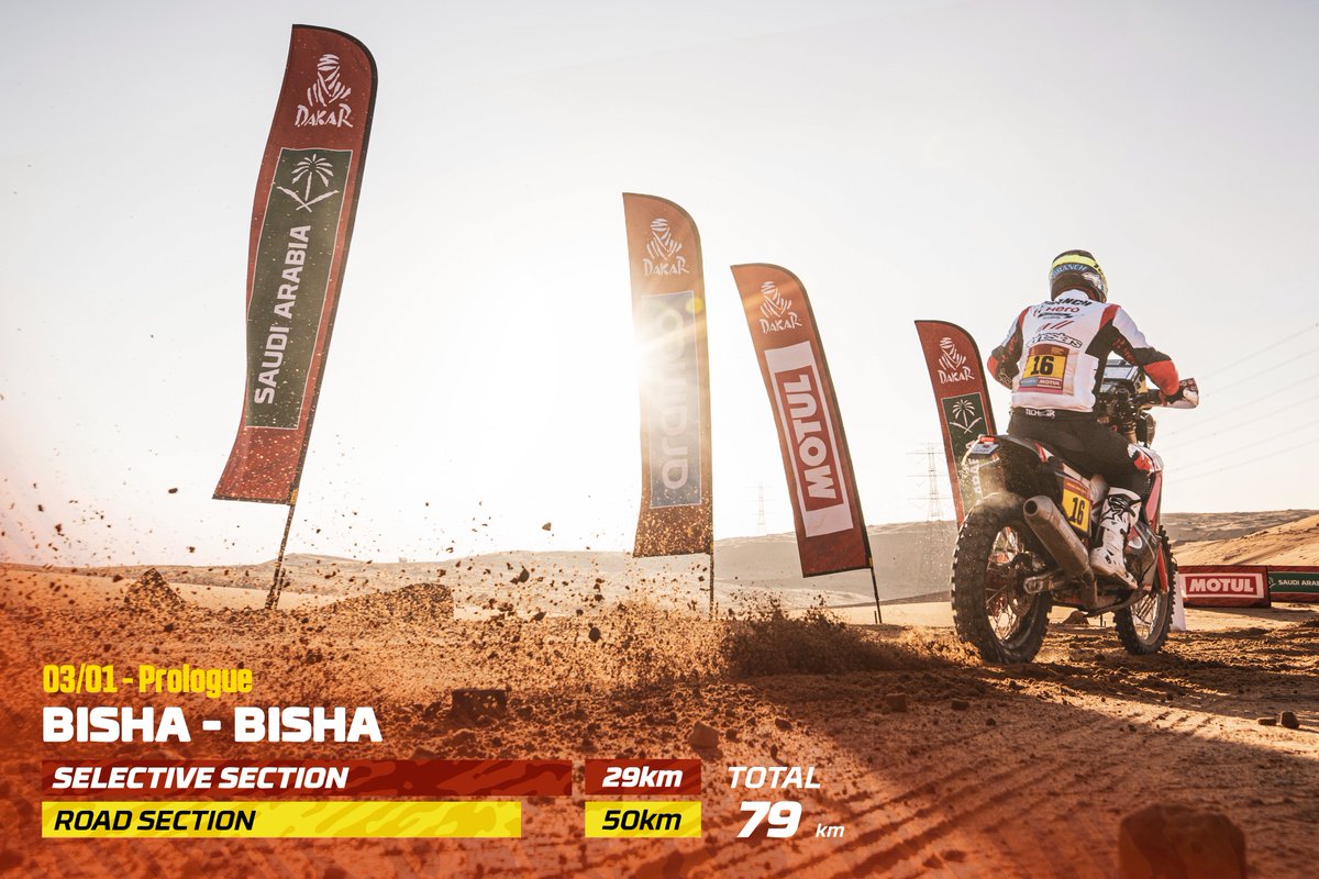 En total, los competidores que tomen la salida en Bisha se enfrentarán a una distancia de unos 7.700 kilómetros, 5.100 de ellos de lucha contra el reloj. Por primera vez, cinco etapas han sido trazadas en recorridos separados para los vehículos FIM y FIA, véase el 45 % del total de los sectores cronometrados.