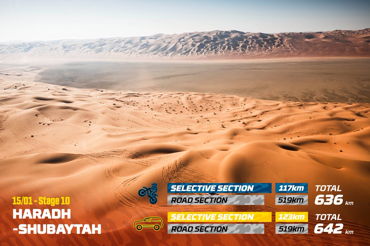 Se aleja pues la perspectiva de rodar de noche en las dunas, aunque los últimos días de carrera en el Empty Quarter servirán a todos en bandeja un océano de arena, sobre todo en la 11ª y anteúltima etapa, de manera que no debemos descartar las sorpresas y vuelcos en la tabla en el gran bucle de Shubaytah.