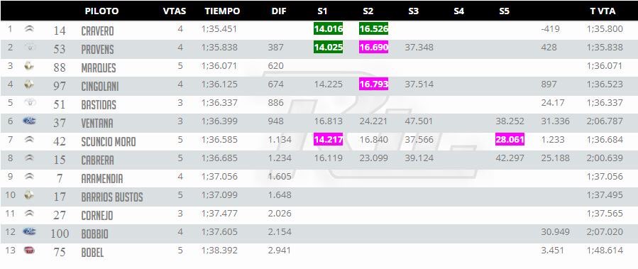 El oriundo de Colazo, Matías Cravero con un C4 del “Equipo FDC” se quedó con la pole al marcar esta tarde 1’35”451/1000, lo que le permite largar adelante la Final del Domingo. Hoy Cravero deberá resignar ocho puestos para correr el Sprint a 15 giros.
