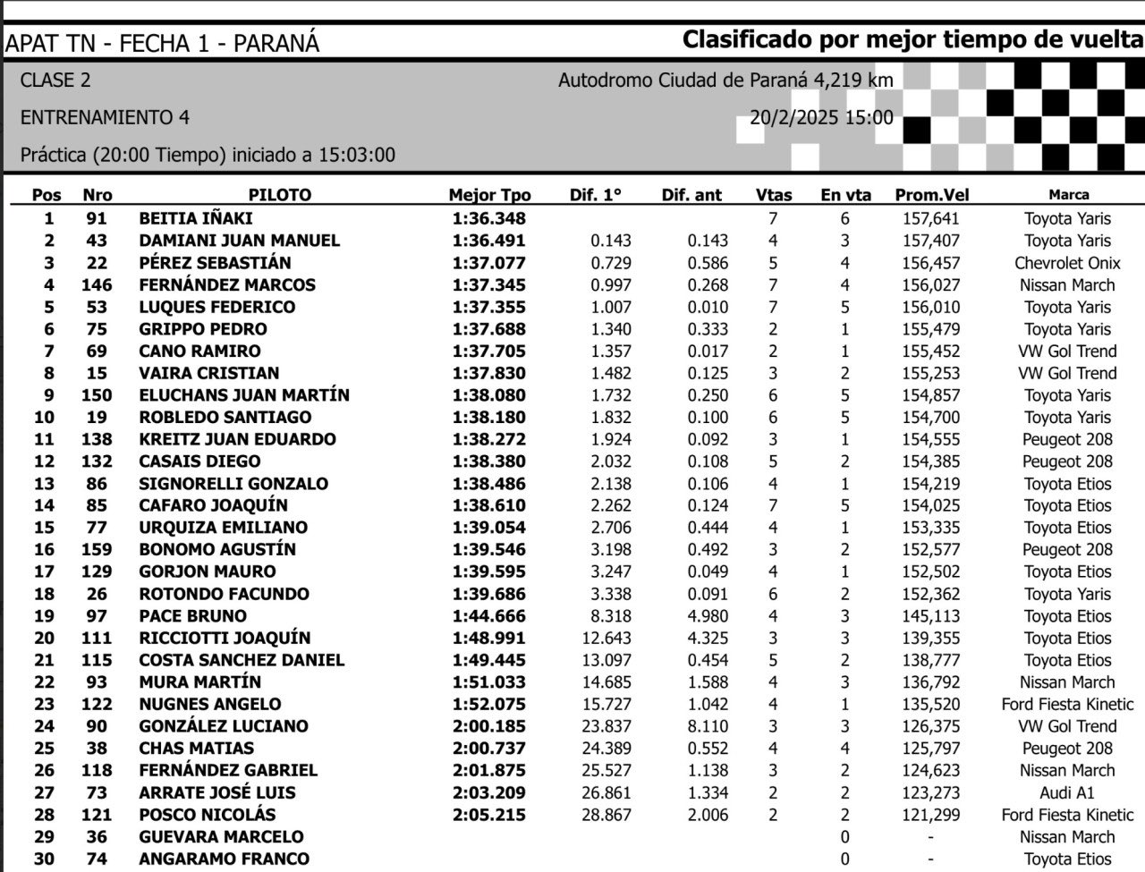 Se viene la Fecha 1 del Campeonato Argentino de Turismo Nacional, que con sus dos clases, se presentará el 21.22 y 23 de febrero en el Autódromo 'Ciudad de Paraná' -4.219 mts.- y ha tenido Pruebas Comunitarias en el día de ayer y hoy.